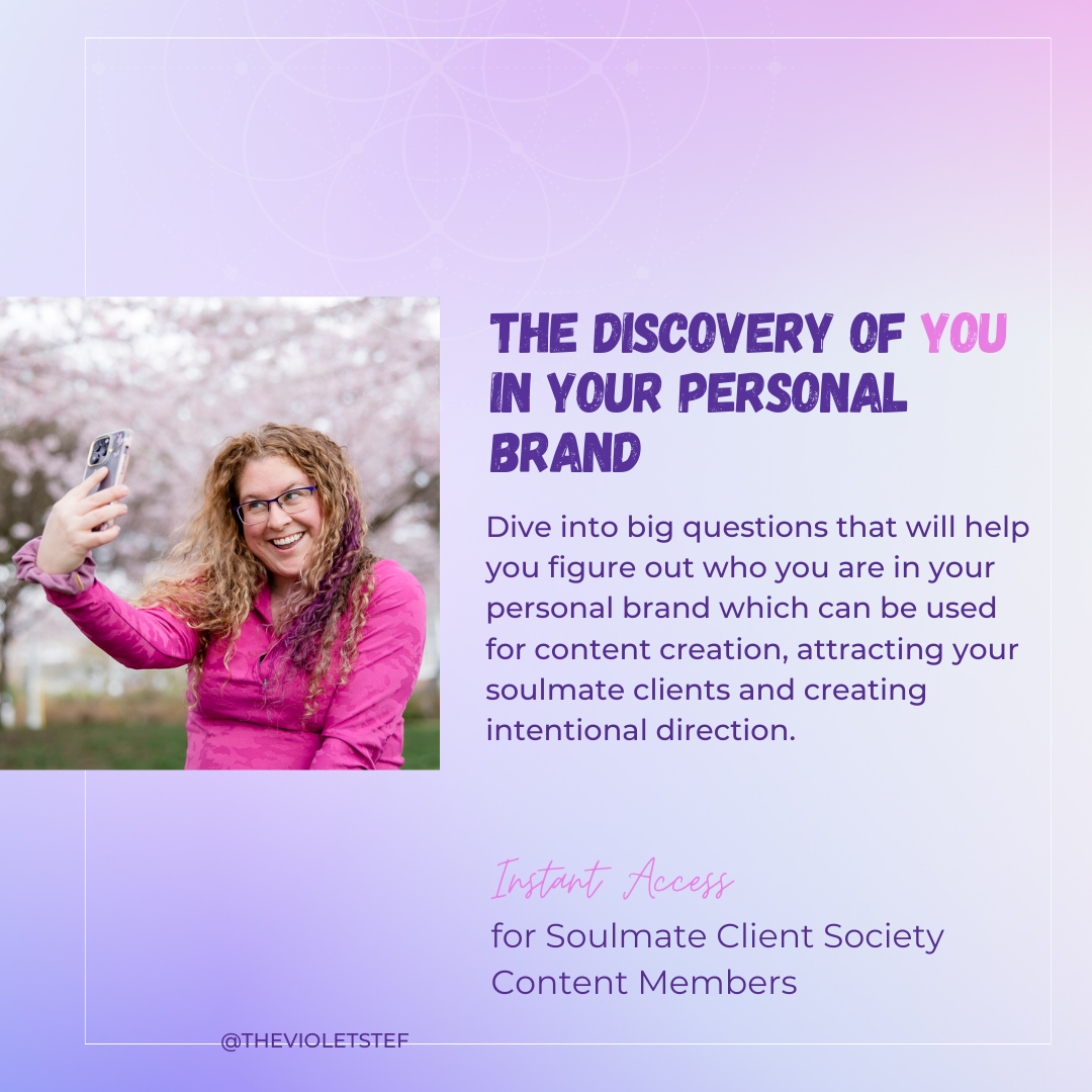 Dive into big questions that will help you figure out who you are in your personal brand which can be used for content creation, attracting your soulmate clients and creating intentional direction.
