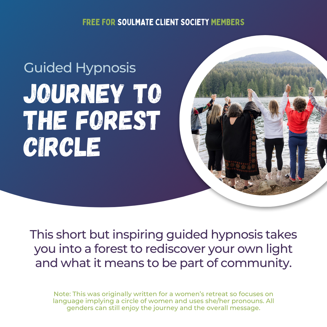 This short (15 minute) but inspiring guided hypnosis takes you into a forest to rediscover your own light and what it means to be part of community. This energy suits the vibe of the Soulmate Client Society to a T!